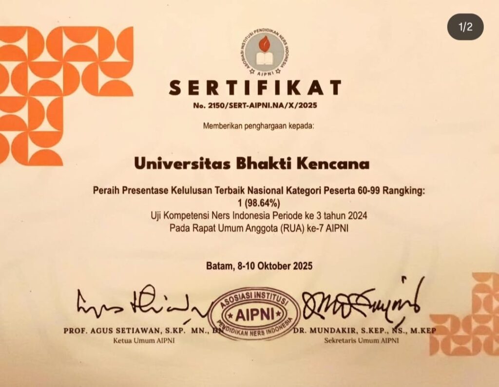 Program Studi Pendidikan Profesi Ners Universitas Bhakti Kencana kembali mencetak prestasi membanggakan dalam Uji Kompetensi Ners Indonesia (UKNI) dengan perolehan persentase kelulusan mencapai 98,57%. Capaian ini menunjukkan kualitas lulusan yang unggul dan kompeten di bidang keperawatan.